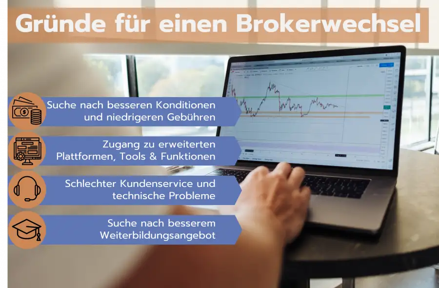 Grundsätzlich gibt es verschiedene Gründe, die einen Brokerwechsel rechtfertigen. Einer der Hauptgründe ist die Suche nach besseren Konditionen und niedrigen Gebühren.