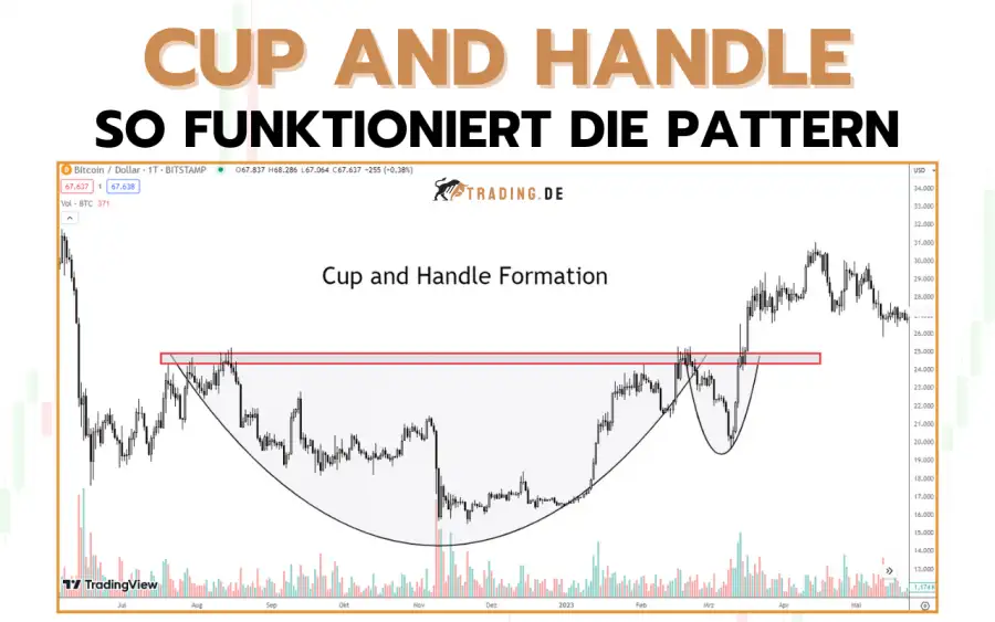Diese bildet sich durch einen Kursrückgang, gefolgt von einer U-förmigen Bodenbildung (Tasse) und einer kleineren Konsolidierungsphase oder einem leichten Rückgang (Griff).