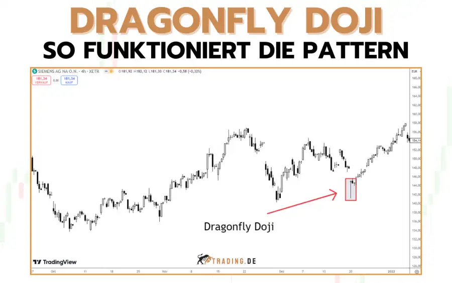Ein Dragonfly Doji ist ein spezielles Doji-Muster mit einem langen unteren Schatten, das auf eine mögliche Trendwende nach Verkaufsdruck hinweist.