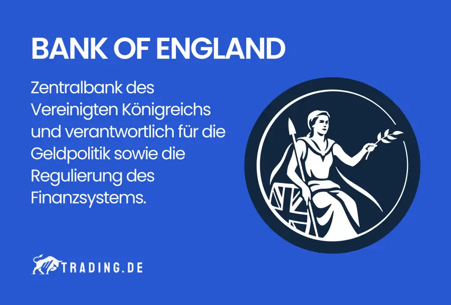 Die Bank of England (BoE) mit Sitz in London ist das führende Finanzinstitut des Vereinigten Königreichs und fungiert als zentraler Broker im britischen Finanzsystem. Ihre primären Zuständigkeiten erstrecken sich über die Steuerung der Geldpolitik des Landes sowie die Ausgabe der nationalen Währung. Darüber hinaus übernimmt sie eine entscheidende Rolle als Aufsichtsbehörde für Banken, Finanzinstitute und Zahlungssysteme.