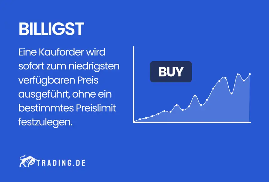 Platziert ein Anleger eine Order mit dem Zusatz billigst, wird diese in das System der Börse eingepflegt. Anschließend sucht der Broker den günstigsten verfügbaren Preis, um die Order auszuführen.