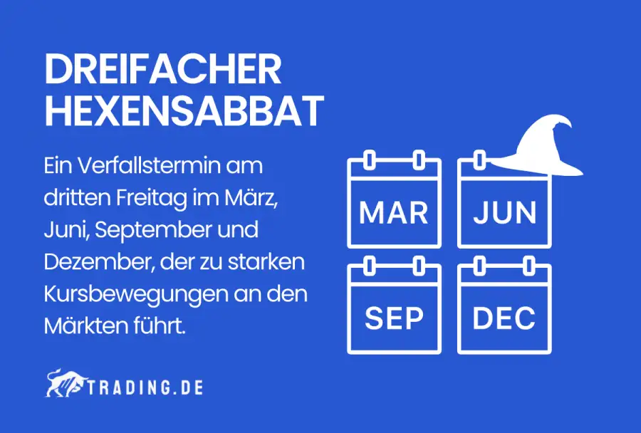 Dreifacher Hexensabbat, auch Triple Witching Day im Englischen genannt, bezeichnet einen besonderen Verfallstermin, der in vier Monaten des Börsenjahres – März, Juni, September und Dezember – am dritten Freitag des Monats stattfindet. An diesem Tag fallen die Verfallstermine von Terminkontrakten zusammen, was häufig zu hektischen Kursbewegungen führt.