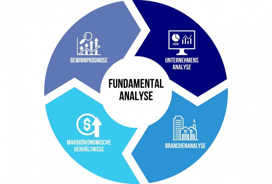 Über die Fundamentalanalyse schaut man sich wirtschaftliche Kennzahlen bezüglich der politischen Rahmenbedingungen, der Branchenentwicklung und der einzelnen Unternehmen an. Dadurch lassen sich gewisse Trends und Chancen ermitteln.