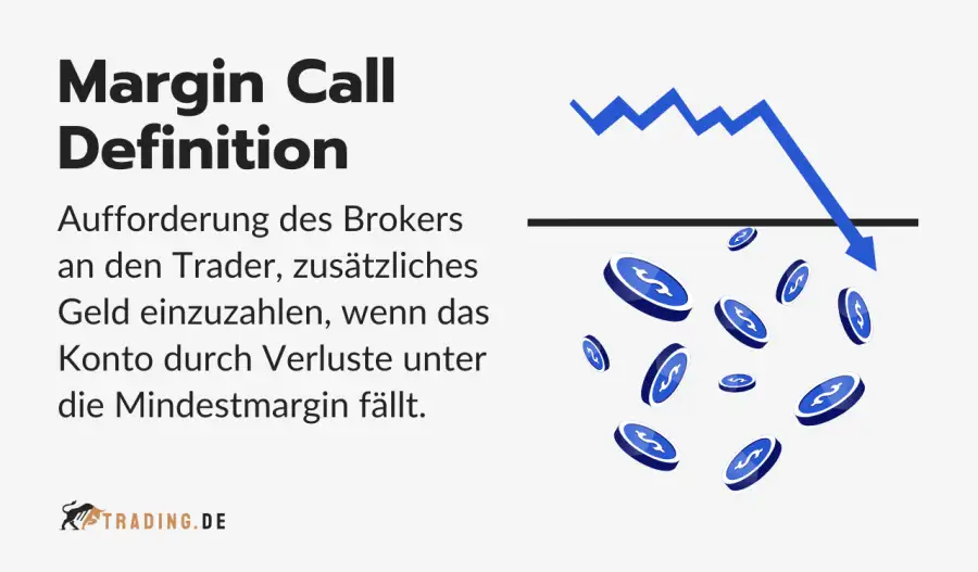 Bei einem Margin Call ist das Eigenkapital des Traders per Definition unter einen bestimmten Schwellenwert gefallen, die sogenannte Mindestmargin. In der Praxis kontaktiert der Broker den Trader oft automatisch über die Handelsplattform und fordert ihn auf, entweder neues Kapital einzuzahlen oder Positionen zu schließen. Der Broker verlangt also schlicht mehr Geld als weitere Sicherheitsleistung.
