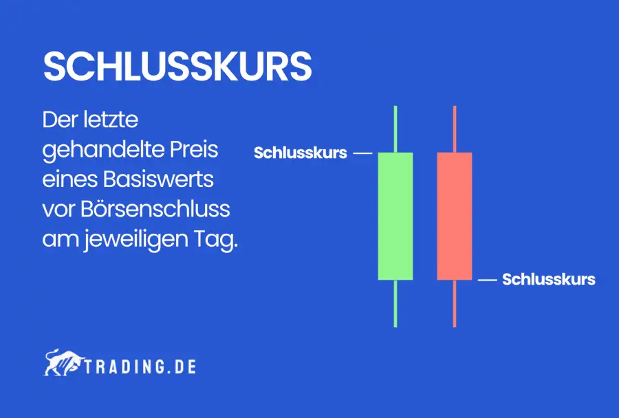 Der Schlusskurs (bzw. der Close in Englisch) beschreibt den letzten Preis des Basiswerts, der am Tag vor Börsenschluss gehandelt wurde. Er kann Tradern in der Regel als Orientierungshilfe für Markttrends über einen längeren Zeitraum dienen. Sie sind mit früheren Eröffnungs- oder Schlusskursen vergleichbar, um Preisänderungen während des Tages zu messen.
