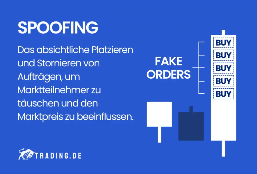 Das Ziel von Spoofing ist, andere Marktteilnehmer zu Reaktionen auf diese vermeintlichen Marktbedingungen zu animieren. Spoofing im Trading ist daher eine illegale Form von Marktmanipulation. Es beinhaltet das Platzieren sowie im weiteren Verlauf das rasche Stornieren von Kaufaufträgen oder Verkaufsaufträgen. Mit diesen Aktivitäten wird der Eindruck von Angebot und Nachfrage erzeugt.