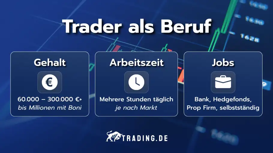 Ein beruflicher Trader handelt für ein Unternehmen verschiedene Finanzprodukte, um Gewinne zu generieren. Dabei kann er entweder für eine Finanzinstitution wie eine Bank, einen Hedgefonds oder eine Investmentgesellschaft arbeiten oder als Trader selbstständig tätig sein.